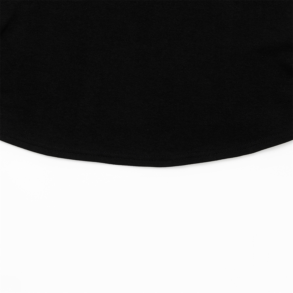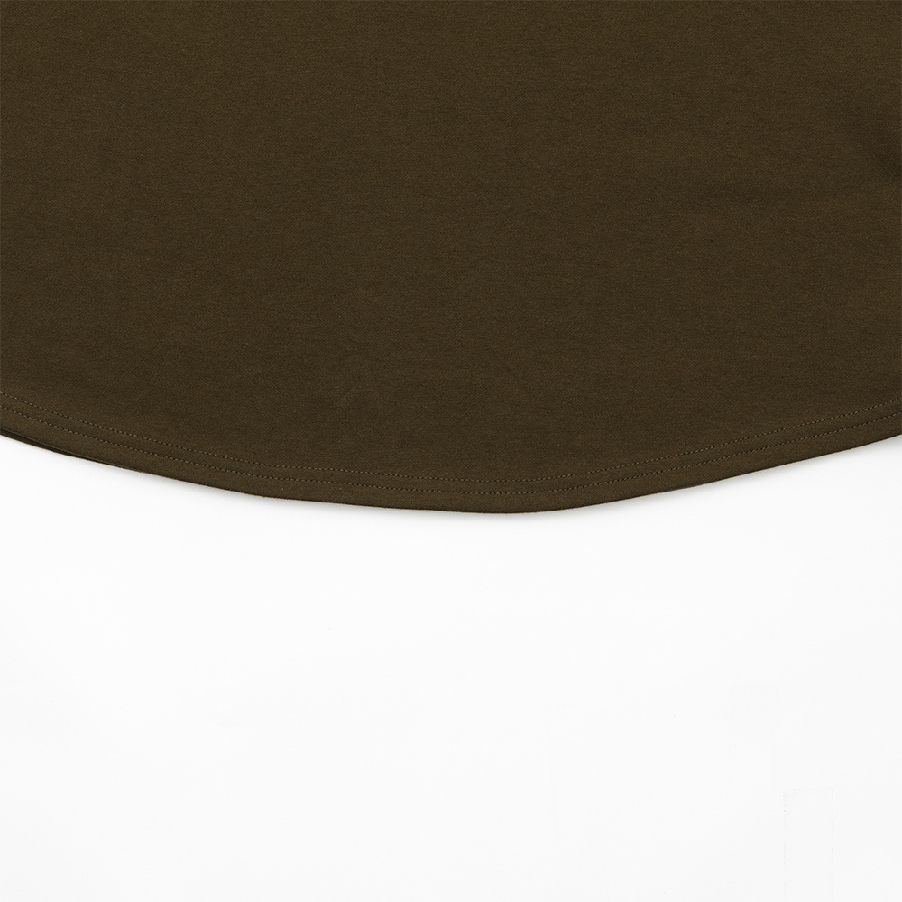 기장감과 밑단 라운드 굴림을 넣어 자연스러운 핏 연출과